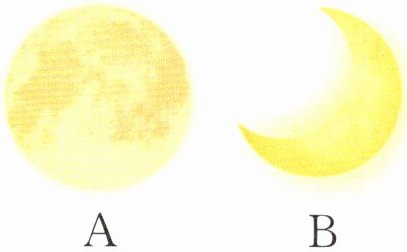 俗话说“十五的月亮十六圆”,右边两幅图中“满月”的图是图( )。我能写出一句描写另一幅图中月亮形状的诗句:______。