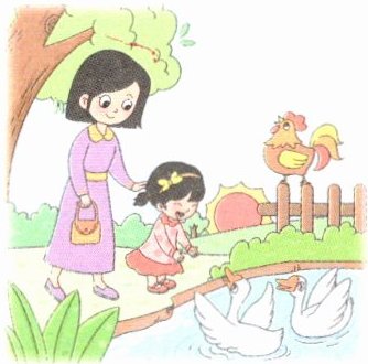 ō ō ā ā 解析·阅读儿歌,根据生活经验可以知道,公鸡的啼叫声是“ō ō ō”;观察图片可以知道,陪“我”到村西的是ā姨。据此填空即可。