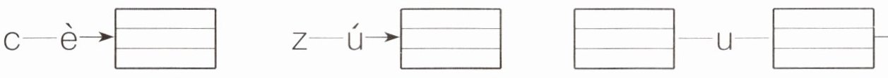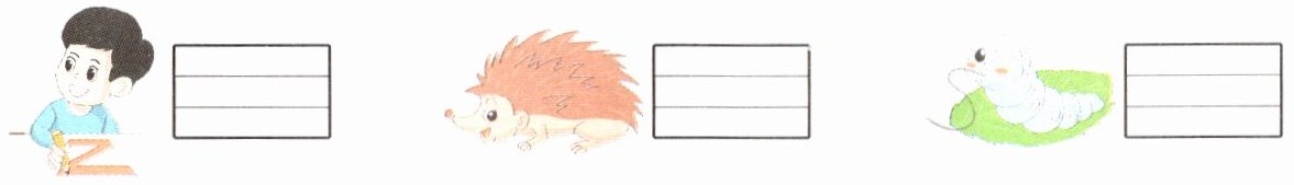 z c s 解析·图一,小朋友画的图形提示字母z;图二,刺猬的“刺”的读音提示字母c;图三,蚕吐出的丝的形状提示字母s。在四线格里写字母时应注意:z一笔写成,占中格;c一笔写成,占中格;s一笔写成,占中格。