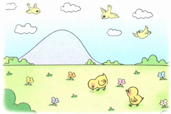 远处一yí山,两liǎng小鸡跑,
