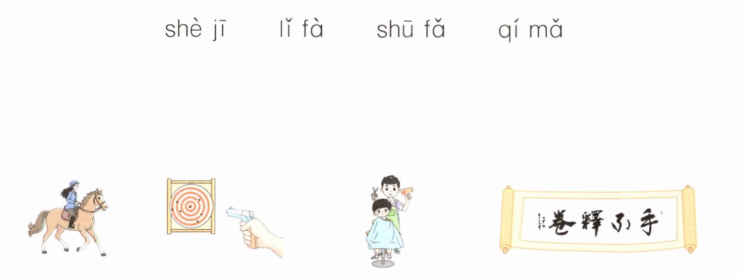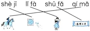一、【神秘图画】学校的墙上挂着一幅幅图画。请你看图,选择正确的声母填一填。