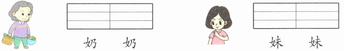 2. nǎi nai pái duì 解析·观察图片可知,第1题中妹妹在喂鱼,第2题中奶奶在排队,据此填写音节即可。