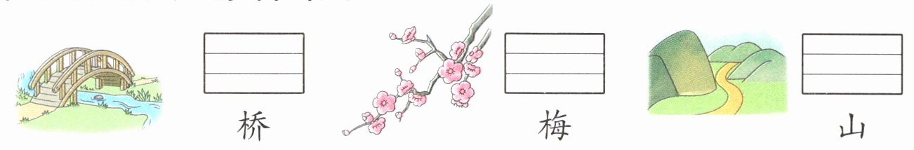 三、【游戏三】秋姑娘请你一起看风景,看图,在四线格中写出下列汉字的音节。