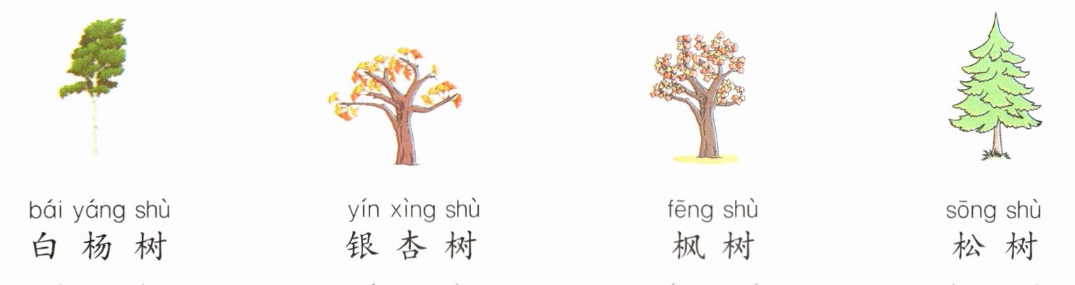 【解析】:本题考查生活常识,秋天来临时,不同树木的落叶情况。一年级学生需要了解基本的树木知识,知道哪些树木在秋天会落叶。通过日常观察或学习,学生应能识别白杨树、银杏树、枫树是落叶树,而松树是常绿树。