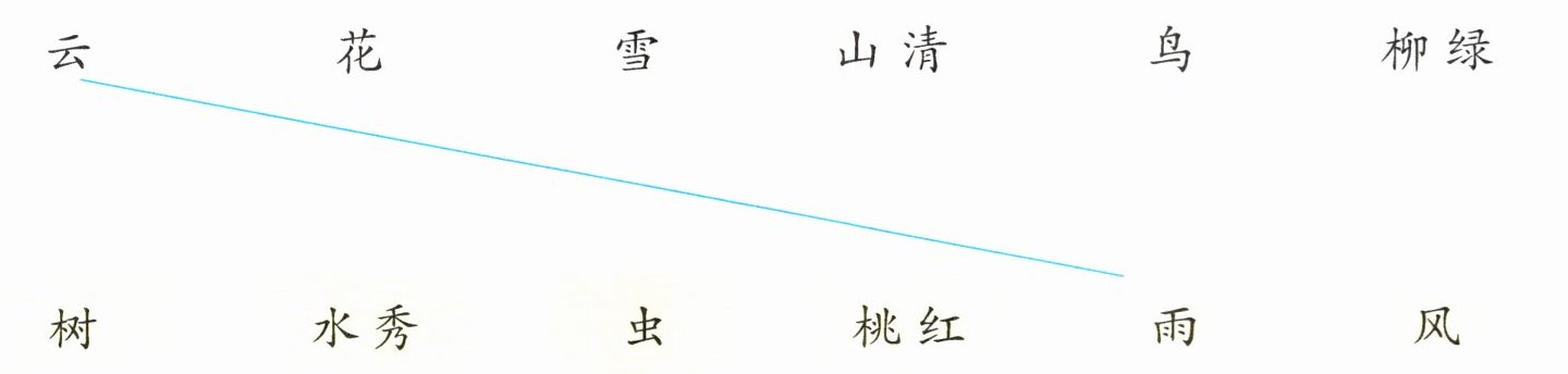 花——树 雪——风 山清——水秀 鸟——虫 柳绿——桃红