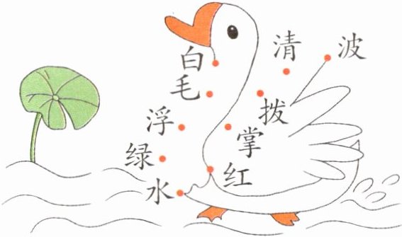 解析:根据《咏鹅》中的“白毛浮绿水,红掌拨清波”连线。