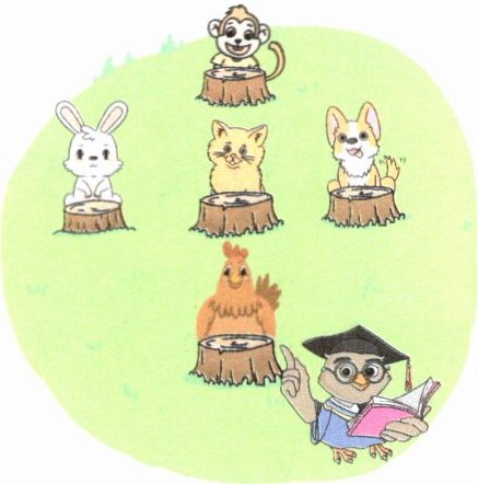 小鸡坐在最( )面,小猴坐在最( )面。小猫的( )面是小兔,小猫的( )面是小狗。