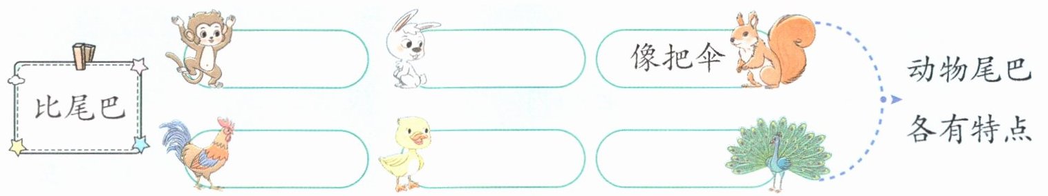 新思维 逻辑梳理 【任务一】下列动物的尾巴各有什么特点?根据课文内容填一填。