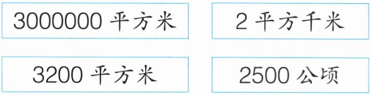 4.3200平方米< 2平方千米< 3000000平方米< 2500公顷