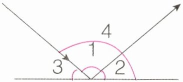 2. 如图,一面镜子反射一条光线,如果 $ ∠2 = ∠3 $,$ ∠4 = 140° $,那么 $ ∠1 = $(