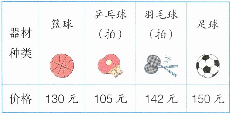 3. 小雨带了5000元,要为学校选购35个(套)同样的运动器材,有多少种购买方案?分别还剩多少钱?