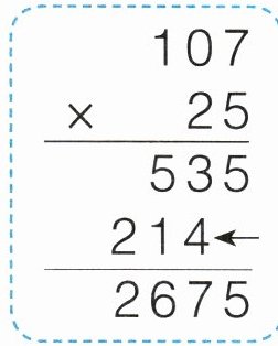 (2)星星采摘园种植草莓秧苗,每行种植107棵,种植了25行。一共种植了多少棵草莓秧苗?右面竖式中箭头所指的这一步表示(