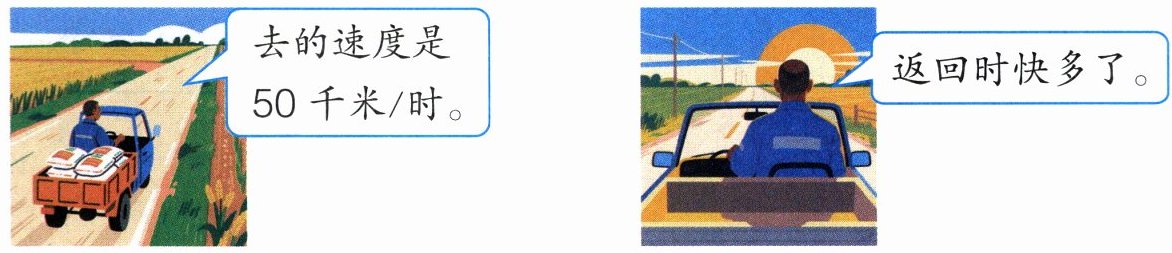 例 5 王叔叔从“农事服务中心”出发去承包农田所在地送化肥,去的时候用了 3 个小时,返回用了 2 个小时。