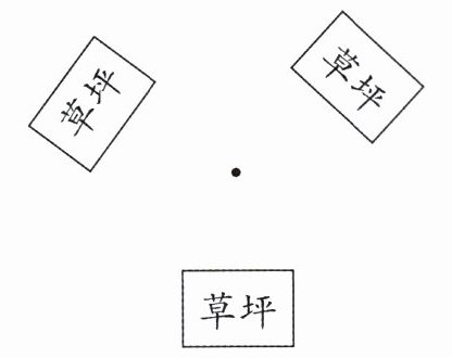 5. [实践运用] 公园内有三块草坪。在三块草坪之间新建了一处水井(如下图),现在要从水井处向三块草坪铺设水管。