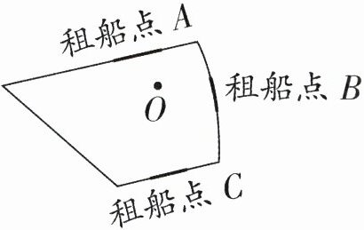 解析 点O离租船点A最近,最短路线就是从点O到租船点A的垂直距离。