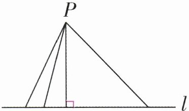 (2) 如图,小汐从直线外一点P向直线l画了四条线段,长度如下,其中一条是垂直线段。那么点P到直线的距离是(