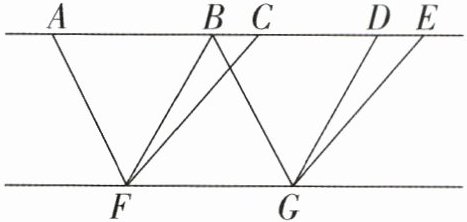 解析:图中上、下两条直线平行,线段AF//BG,BF//DG,CF//EG,可找出3个平行四边形。这3个平行四边形夹在两条平行线中间,因此它们的高都相等,而它们有一条底边是同一条边,所以底也相等。