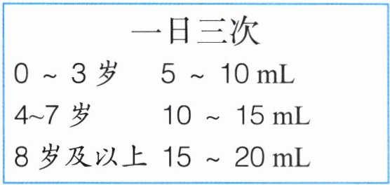 4 一瓶 180 毫升的止咳糖浆,用法用量如下表,小智今年 8 岁,这瓶止咳糖浆够小智喝三天吗?