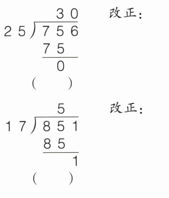 2. 下面的竖式计算错在哪里?选择错因,并改正。
