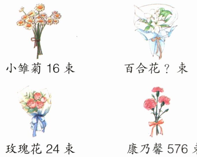 4 每年5月的第二个星期日是母亲节,花店在母亲节前夕新进一批鲜花,数量如下。