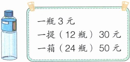 解析:30元÷12瓶<3元/瓶;若买2提24瓶,需60元,因此买一箱比买一提合算,买一提比买一瓶合算。所以购买时先按箱买,再按提买,最后按瓶买最合算。