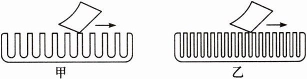 7. 如图甲、乙所示,用薄塑料片在两把塑料梳子的齿上用同样的速度分别划一次,则(