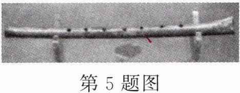 5. (2023·菏泽)1987年我国发现了公元前6000年以前的一支完整骨笛——贾湖骨笛(如图所示),它是由丹顶鹤尺骨制成的,上有七个音孔。演奏时用手指控制不同音孔的开闭,使它发出声音的