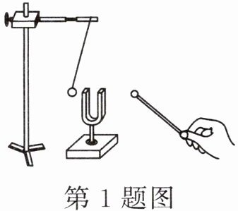 1. 如图所示,用细线拴着硬泡沫塑料小球,悬挂在铁架台上,用橡皮槌轻轻敲击音叉,音叉