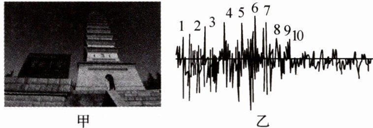 (1)图乙是某次实验时回声的波形图,图中编号1-10为不同塔檐的回声,其中声音最响亮的是编号