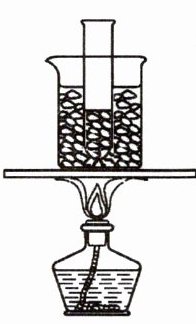 8. 把盛有碎冰块的大试管插入盛有碎冰块的烧杯中,如图所示。用酒精灯对烧杯底部慢慢加热,当烧杯中的冰块有大半熔化时,试管中的冰(