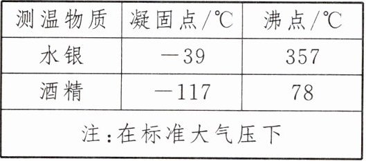 (2)水银和酒精是液体温度计常用的测温物质。由表格中的数据可知,本实验应选用