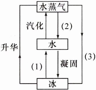 5. 在自然界的水循环中,水的状态发生了变化,如图所示。其中(1)、(2)、(3)对应的物态变化名称分别是______、