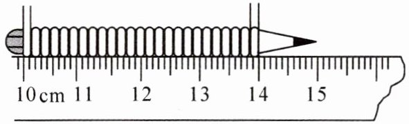 (4) 图中测出$25$圈细铜丝线圈的长度为$cm$,该细铜丝的直径为$mm$。