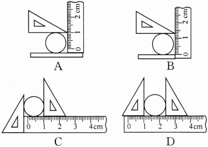 1. 如图所示为测量硬币直径的几种方法,其中正确的是(