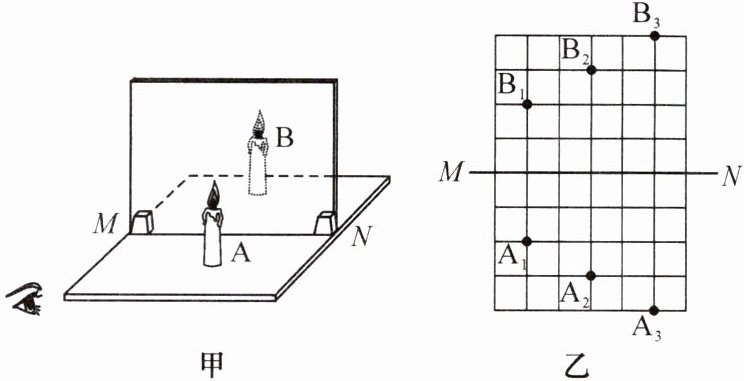 放置在水平桌面上。(2)将点燃的蜡烛 A 放置在 MN 前面,将外形相同、没有点燃的蜡烛 B 在 MN 后面移动,直至与 A 的像完全重合,重合现象说明