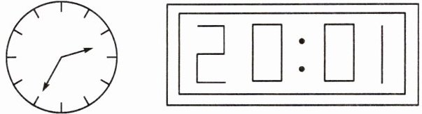 12. 小明从平面镜里看到镜子对面石英挂钟和电子钟所成的像如图所示,这时石英挂钟和电子钟显示的时间分别是