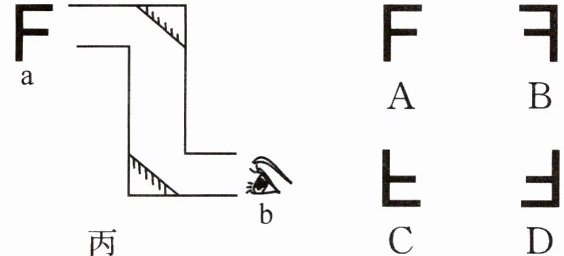 (1)当该潜望镜正对图丙 a 处的“F”光源时,人眼在 b 处观察到的像是(