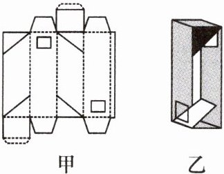 14. 制作潜望镜时,买两面小镜子,用一个长方形硬纸板制作成镜筒,宽度比小镜子稍大。两块平面镜分别安装在镜筒的上下两端,两块平面镜互相平行,都与水平方向成 45°角,就制作成了一个简单的潜望镜,如图甲、乙所示。