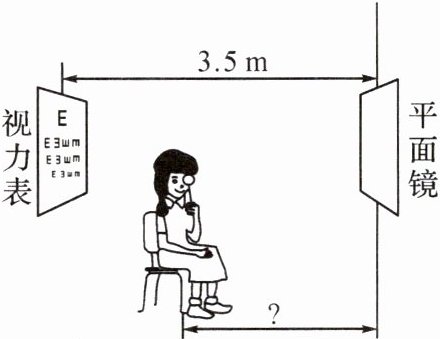 9. 视力检测时要求被测的人与视力表的距离为 5 m。如图所示,视力表与平面镜的距离是 3.5 m,为满足检测要求,人与平面镜的距离应为(