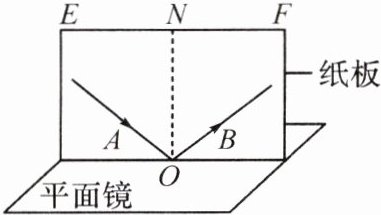 (1)使一束光贴着纸板沿某一角度射到$O$点,经平面镜反射,沿另一个方向射出,在纸板上用笔描出入射光$AO$和反射光$OB$的径迹;接下来应该改变