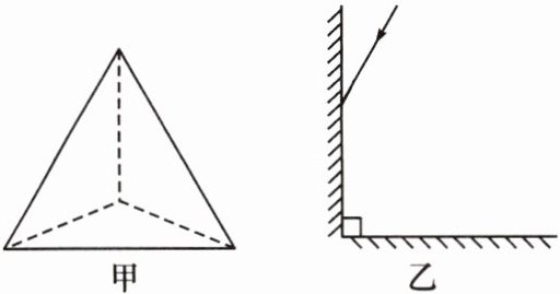 13. (2024·泸州)如图甲是随嫦娥六号一起发射的角反射器的示意图,其三个反射面相互垂直,其中两个反射面如图乙所示,一束光只在这两个反射面发生了反射,请在图乙中画出这束光反射的光路图(保留作图痕迹)。
