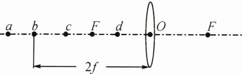 4. 小明在探究凸透镜成像规律时,保持凸透镜的位置不变,先后把发光体放在如图所示的a、b、c、d四点,并分别调整右侧光屏的位置。请回答下列问题: