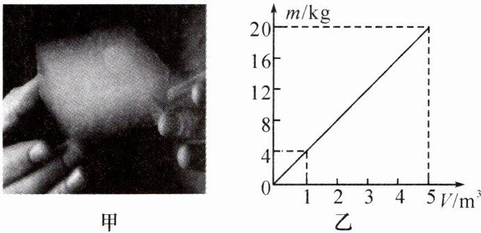 3. 气凝胶是世界上密度最小的固体,如图甲所示,它是一种在航天领域广泛使用的新材料,如图乙所示是某种气凝胶质量与体积的关系图像,求: