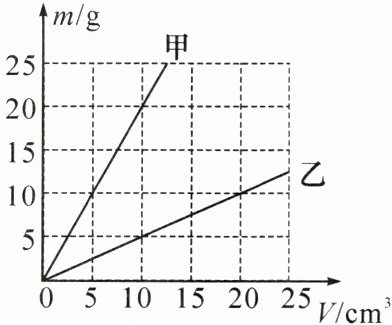 7. 如图所示为甲和乙两种物质的质量与体积的关系图像,分析图像可知(