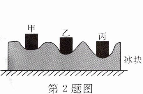 球。将质量相同的甲、乙、丙三块金属加热到相同的温度后,放到上表面平整的冰块上,经过一定时间后,冰块形状基本不再变化时的情形如图所示,则三块金属中比热容最小的是甲
