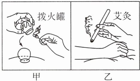 8. (2024·洛阳涧西区期中)中医是我国的四大国粹之一。拔火罐能有效治疗某些疾病,使用时先加热火罐中的气体,再按图甲所示方法迅速将火罐按到皮肤上,一段时间后,罐内气体的温度