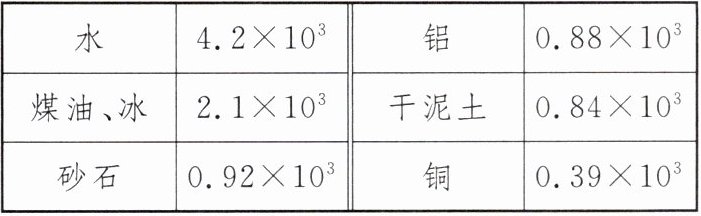 5. (2024·信阳平桥区期末)下表是一些物质的比热容[单位:J/(kg·℃)],根据表中数据,下列判断正确的是(