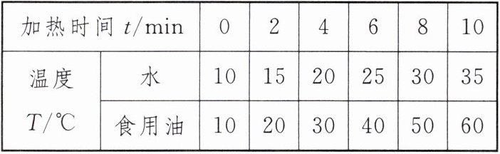 、初温均相同的水和食用油。(3)每隔2min测量一次水和食用油的温度,将实验数据记录在表中。分析数据可知,若要使水和食用油升高到相同的温度,则需要给水加热更