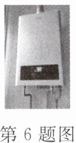 6. (2024·洛阳偃师区期中)现在农村很多家庭都装上了天然气热水器(如图),小洛同学家里就装了一台能记录烧水质量的燃气热水器,于是小洛就想测量一下这台燃气热水器的效率。当家人洗澡时(此时家里只有热水器使用燃气),他发现把$50kg$的水从$20^{\circ}C$加热到$54^{\circ}C$,天然气表的示数由$1365.05m^{3}$,变成$1365.26m^{3}$。则此过程消耗的天然气完全燃烧放出的热量是