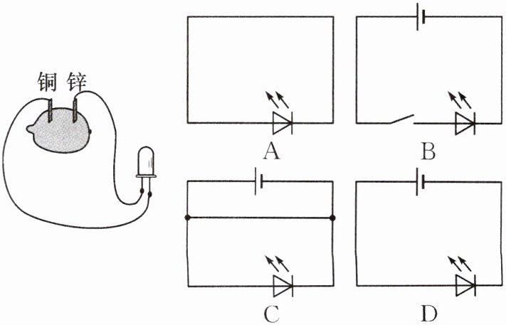 7. (2024·广西)如图是水果电池和发光二极管( )组成的电路。下列电路图中与其对应的是(